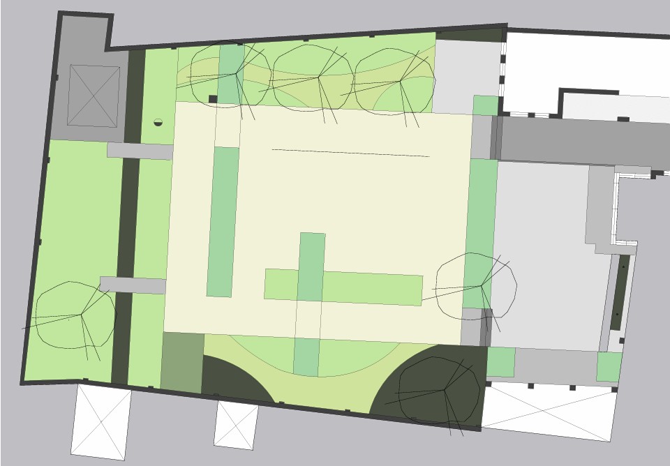 Een uitgeleefde, ommuurde tuin wordt opnieuw aangelegd, waarbij verschillende bestaande volwassen bomen en heesters behouden blijven. Met het nieuwe ontwerp is er gezorgd voor meer verbinding, zodat de tuin weer als een samenhangend geheel aanvoelt. Er zijn ook enkele nieuwe bomen, struiken en vaste planten toegevoegd. Het ontwerp valt op door strakke lijnen in combinatie met een organische indeling van de plantbedden. De keuze van de beplanting is klassiek, met kleuren in paars, zilver en wit.